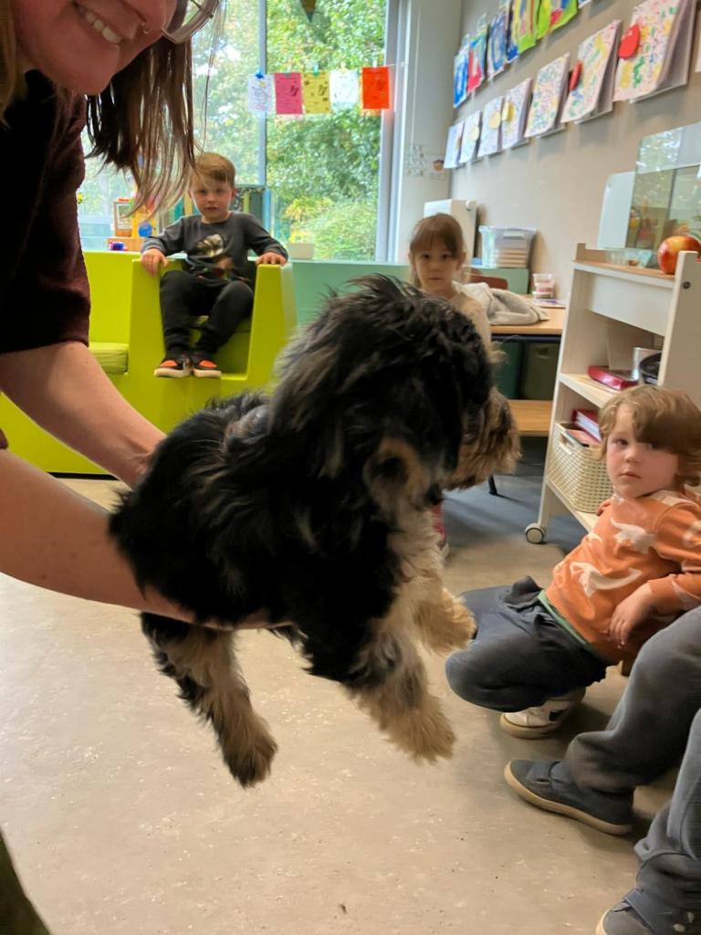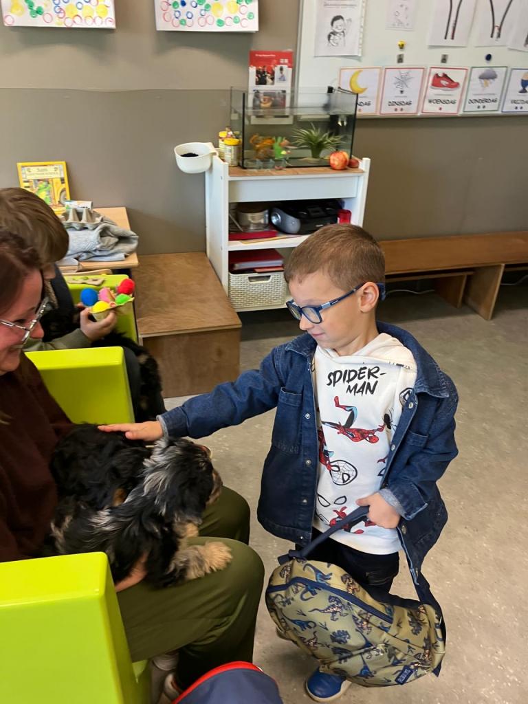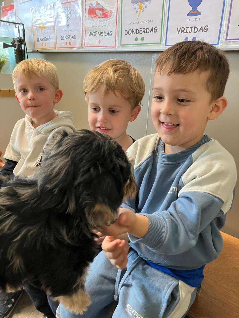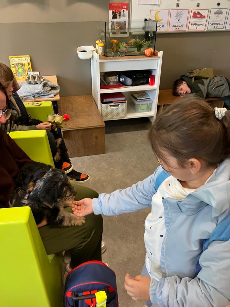 Op dinsdag 30 oktober kwam klasse-ouder Jolien, mama van klasgenootje Thibo, op bezoek met 3 van hun puppy's.
