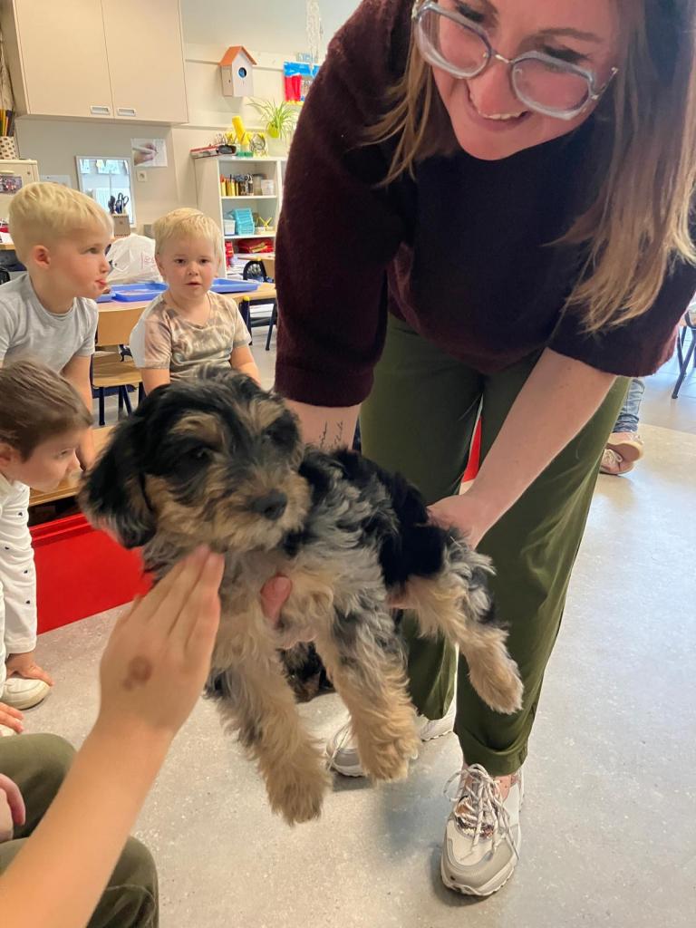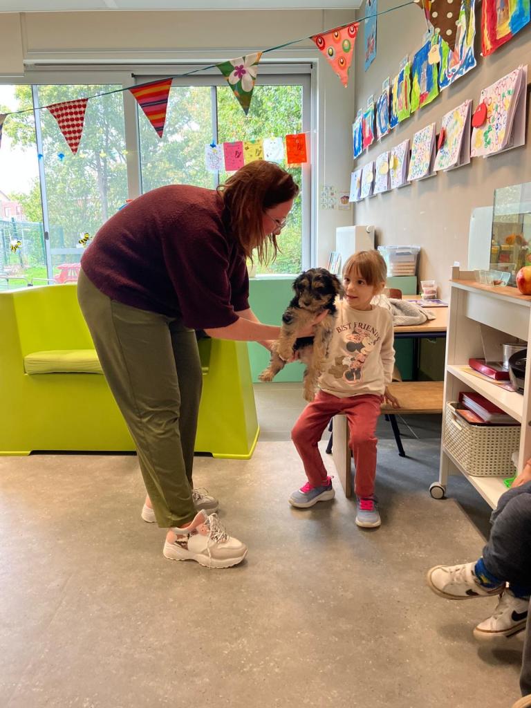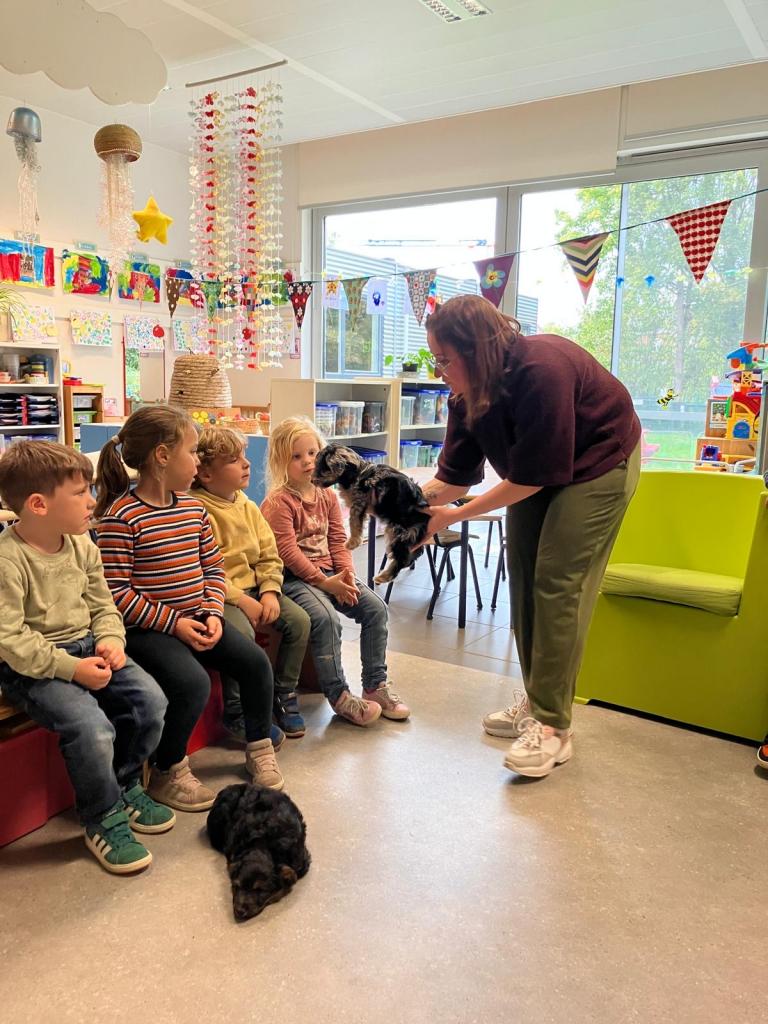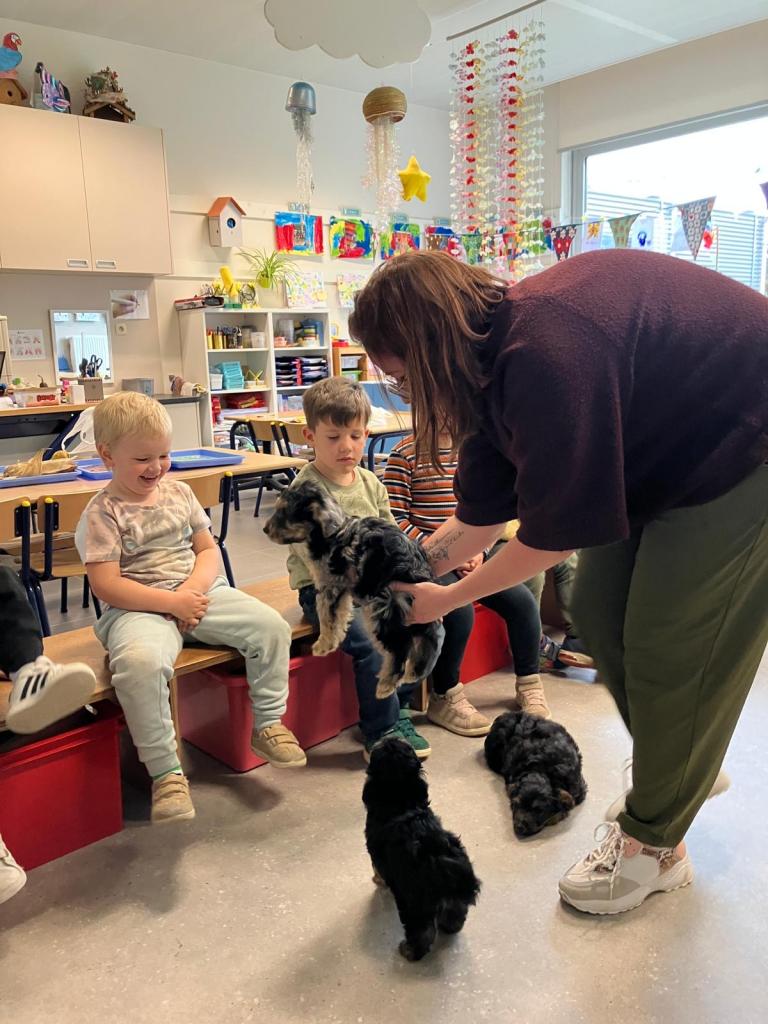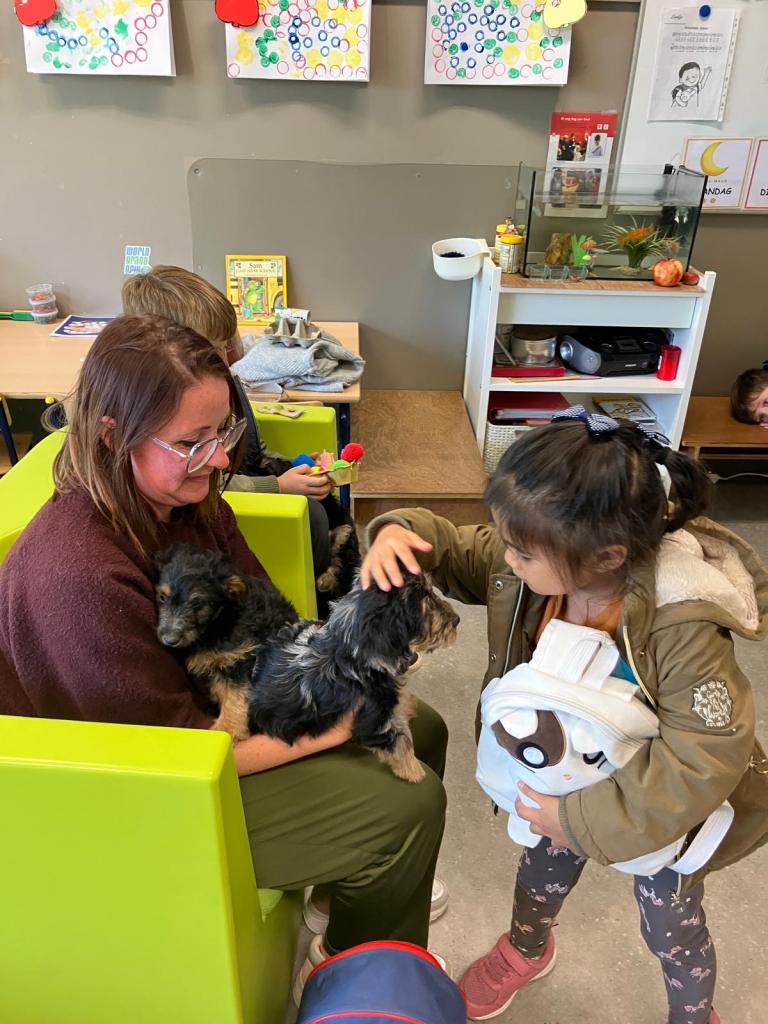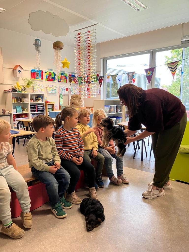 Puppy's in de klas van 2klA met klasse-ouder Jolien