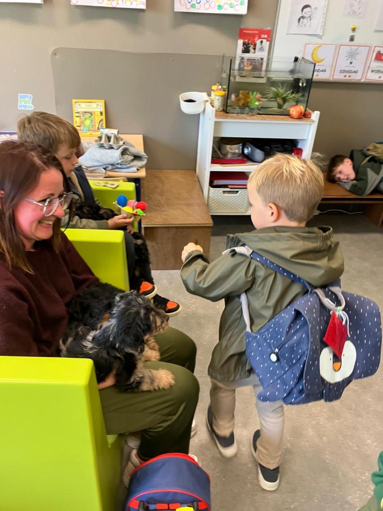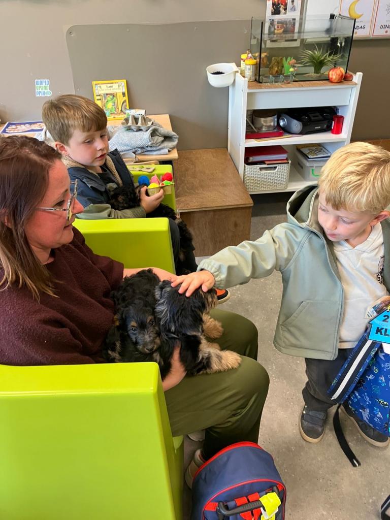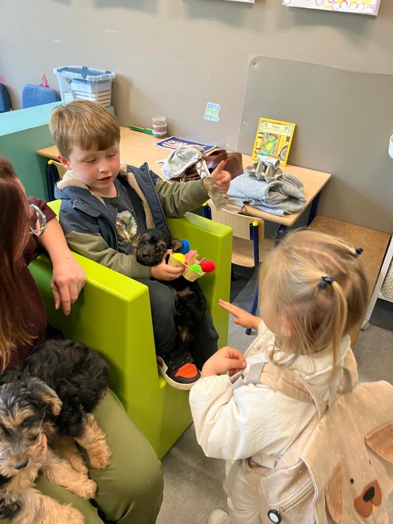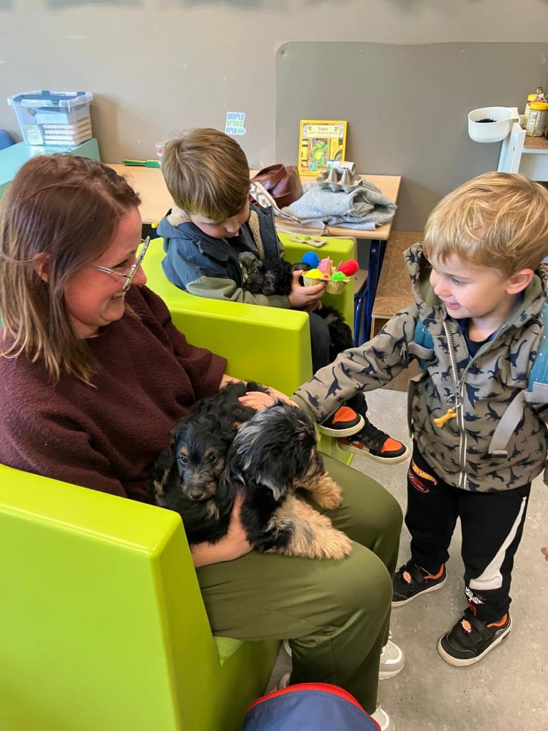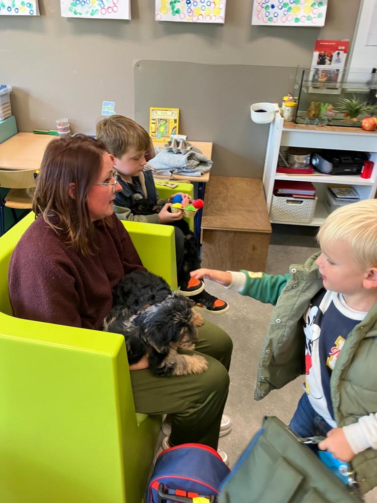 Puppy's in de klas van 2klA met klasse-ouder Jolien