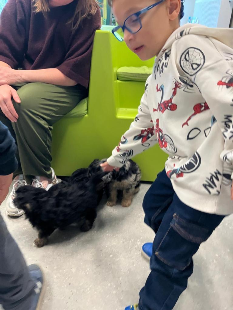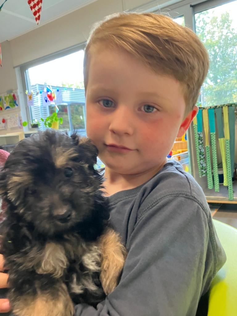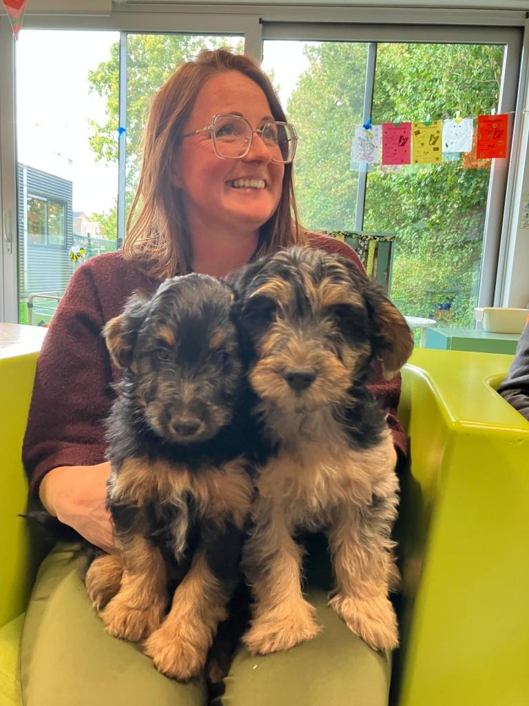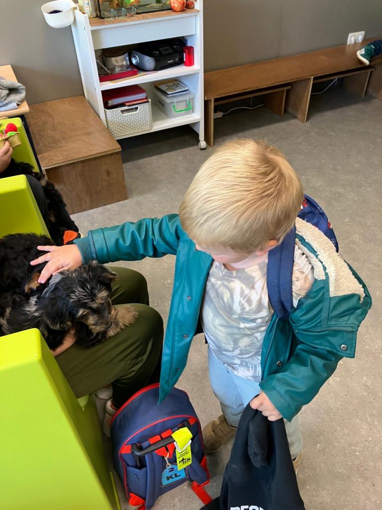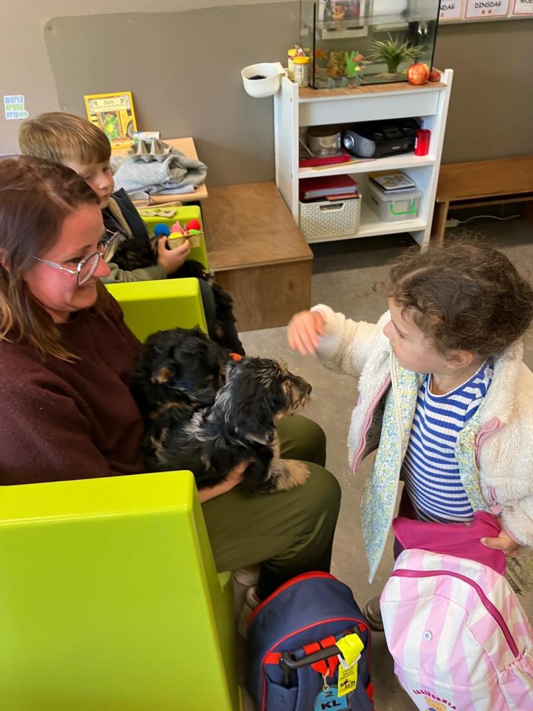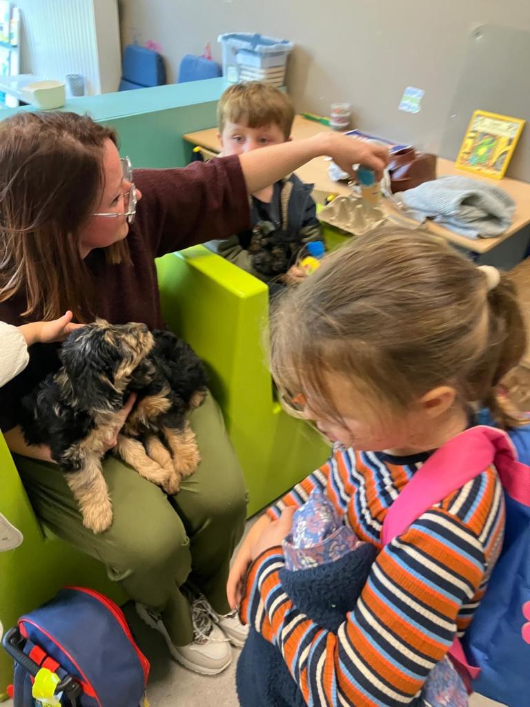 Puppy's in de klas van 2klA met klasse-ouder Jolien
