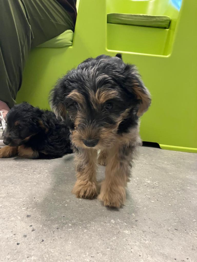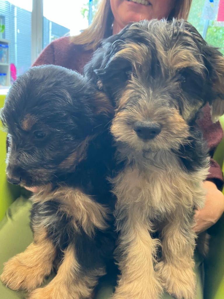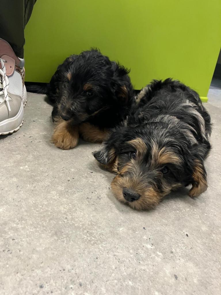 Wat een schattige en rustige pluizenbollen, een mix met Koningspoedel die binnenkort naar hun nieuwe mandje vertrekken.