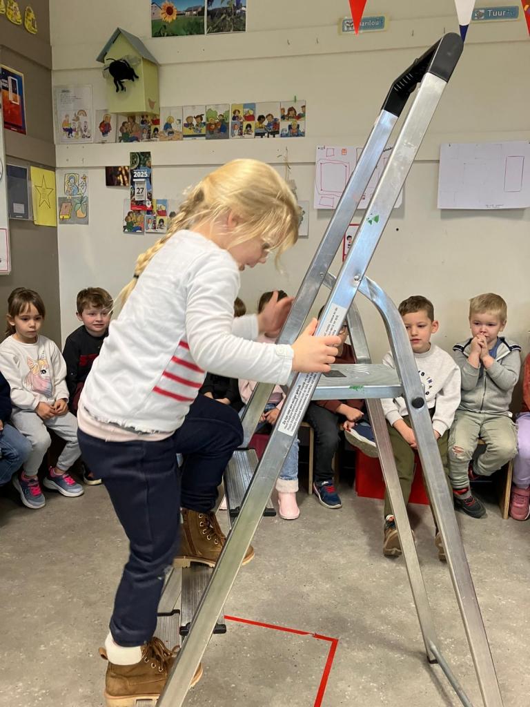Met een ladder natuurlijk...dus probeerden wij dat ook eens uit.