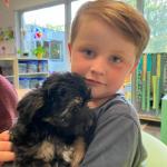 Puppy's in de klas van 2klA met klasse-ouder Jolien