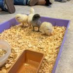 Klasse-ouder Sanne met kippen op bezoek in 2klA