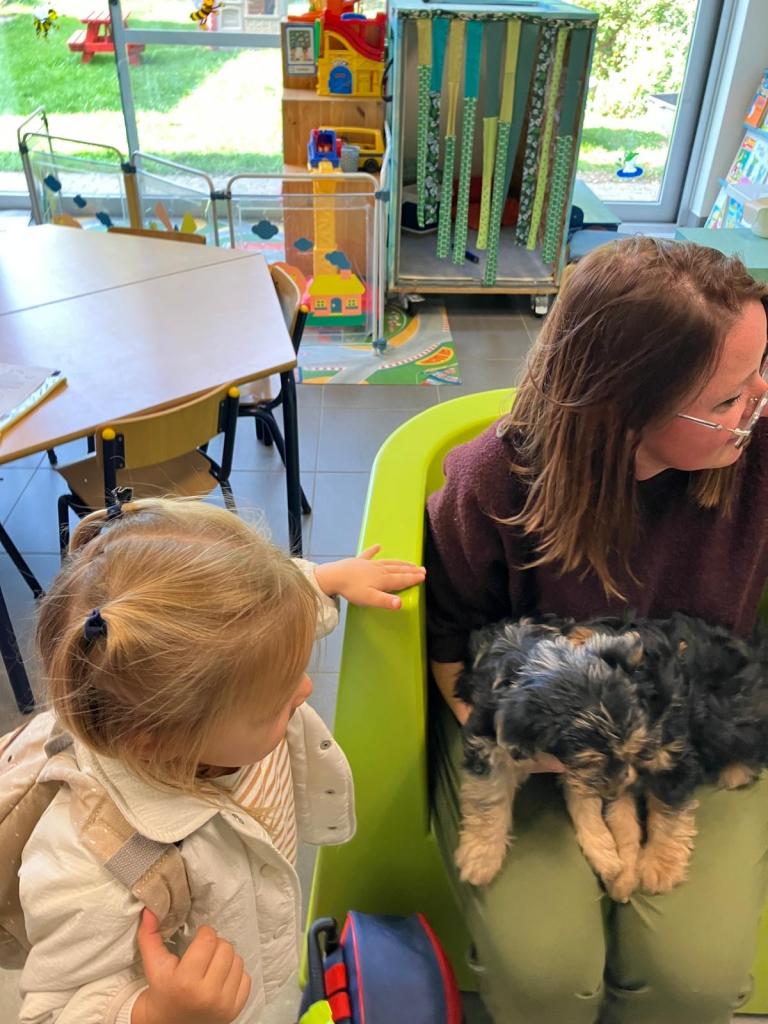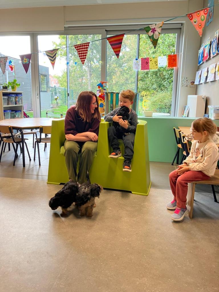 Op dinsdag 30 oktober kwam klasse-ouder Jolien, mama van klasgenootje Thibo, op bezoek met 3 van hun puppy's.