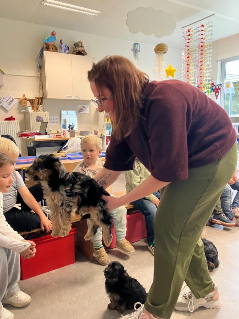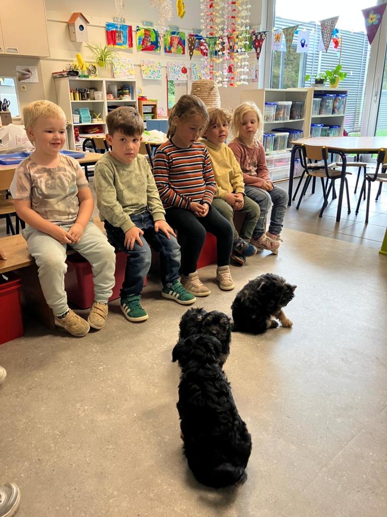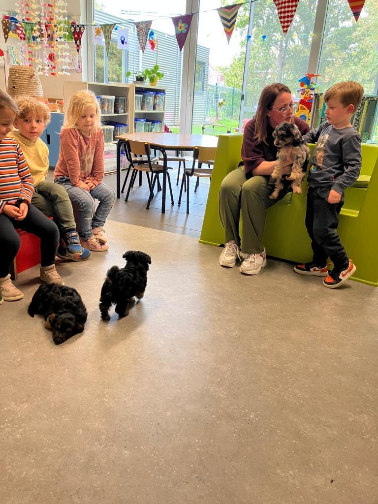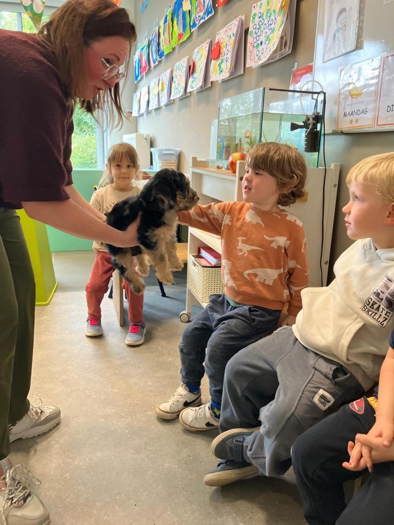 Puppy's in de klas van 2klA met klasse-ouder Jolien