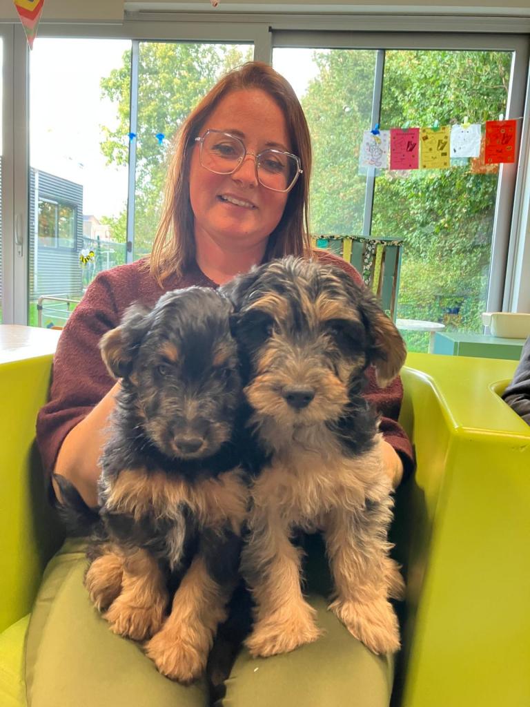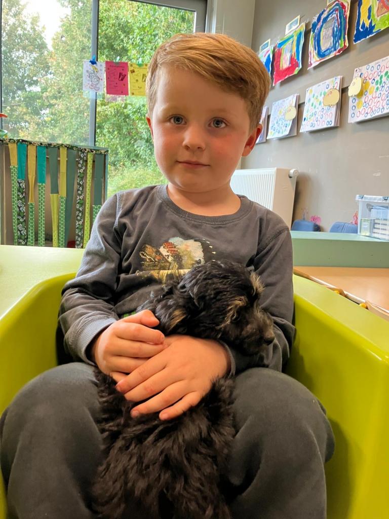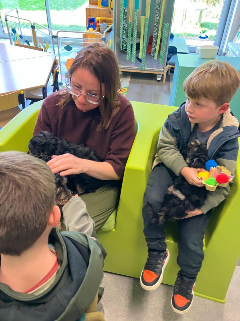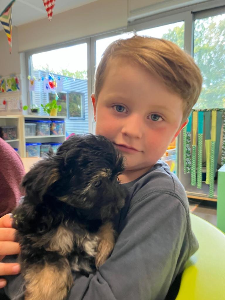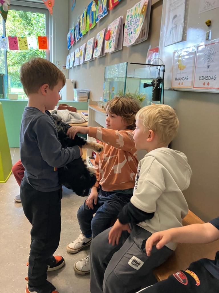 Puppy's in de klas van 2klA met klasse-ouder Jolien