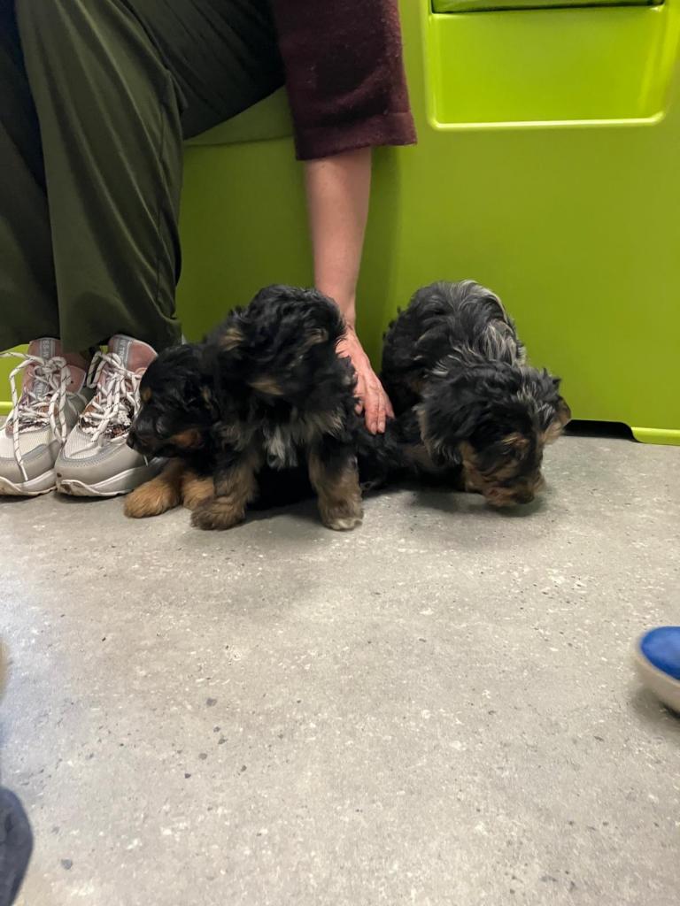 Wat een schattige en rustige pluizenbollen, een mix met Koningspoedel die binnenkort naar hun nieuwe mandje vertrekken.