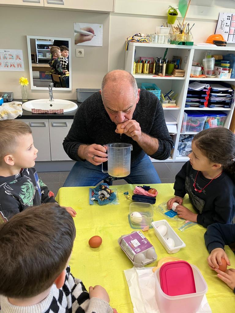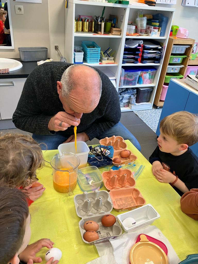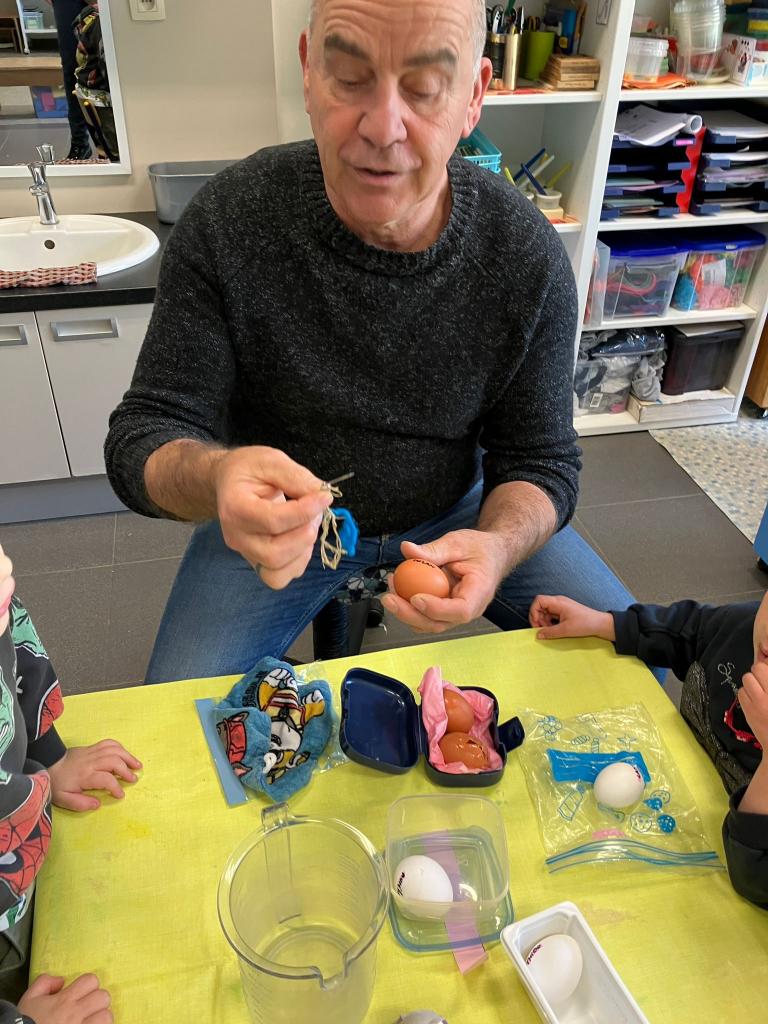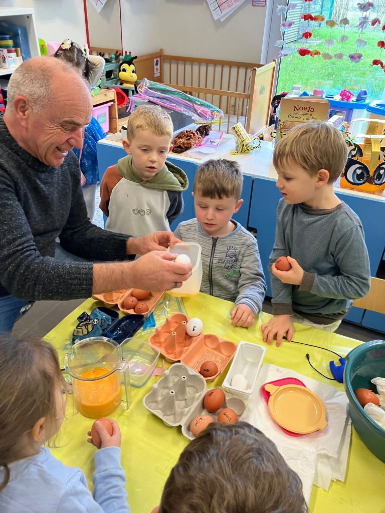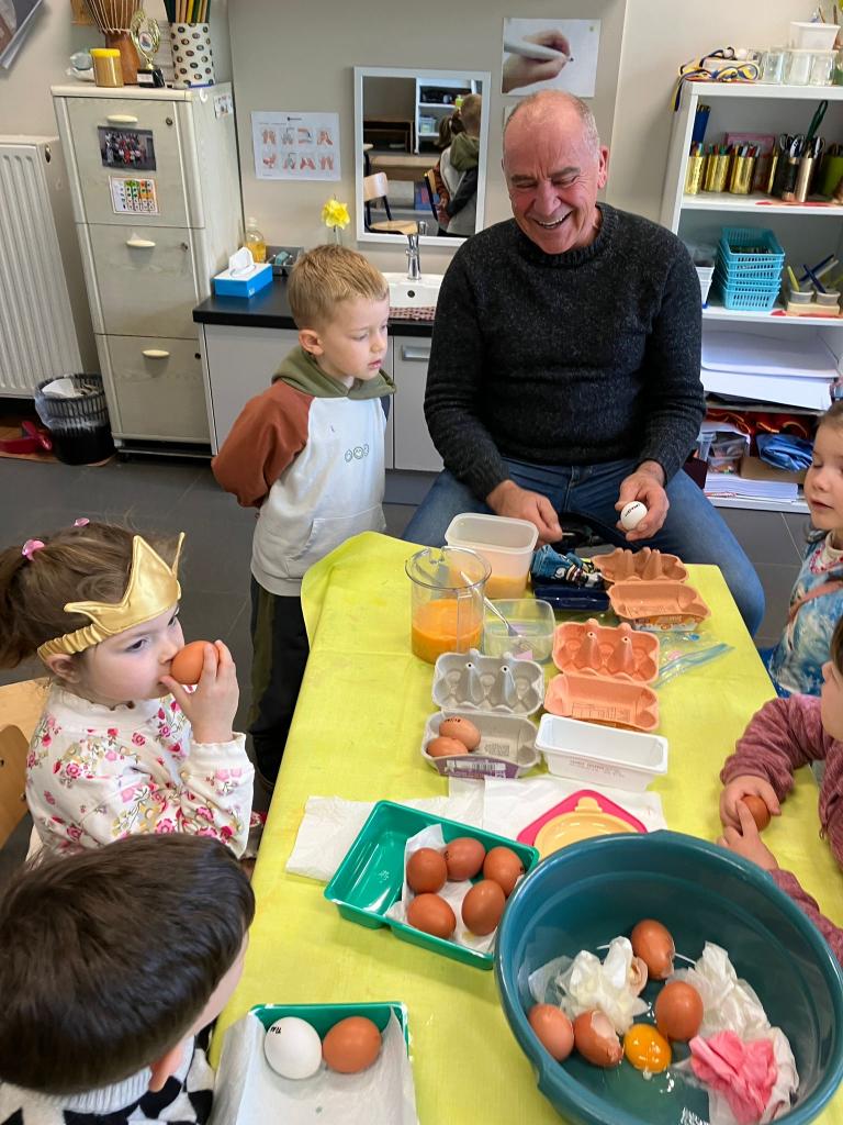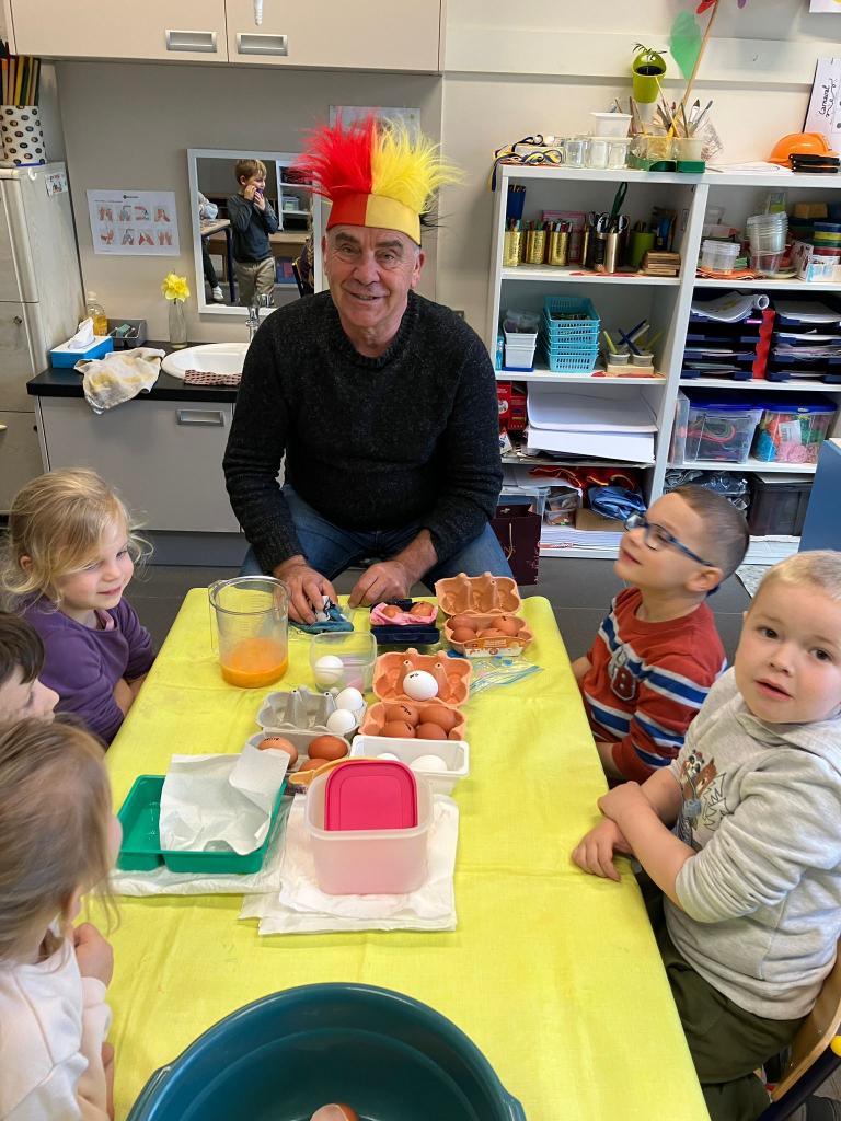 Als de beste kan hij eitjes uitblazen en leerde het onze kleuters.
