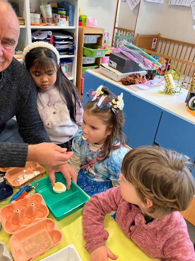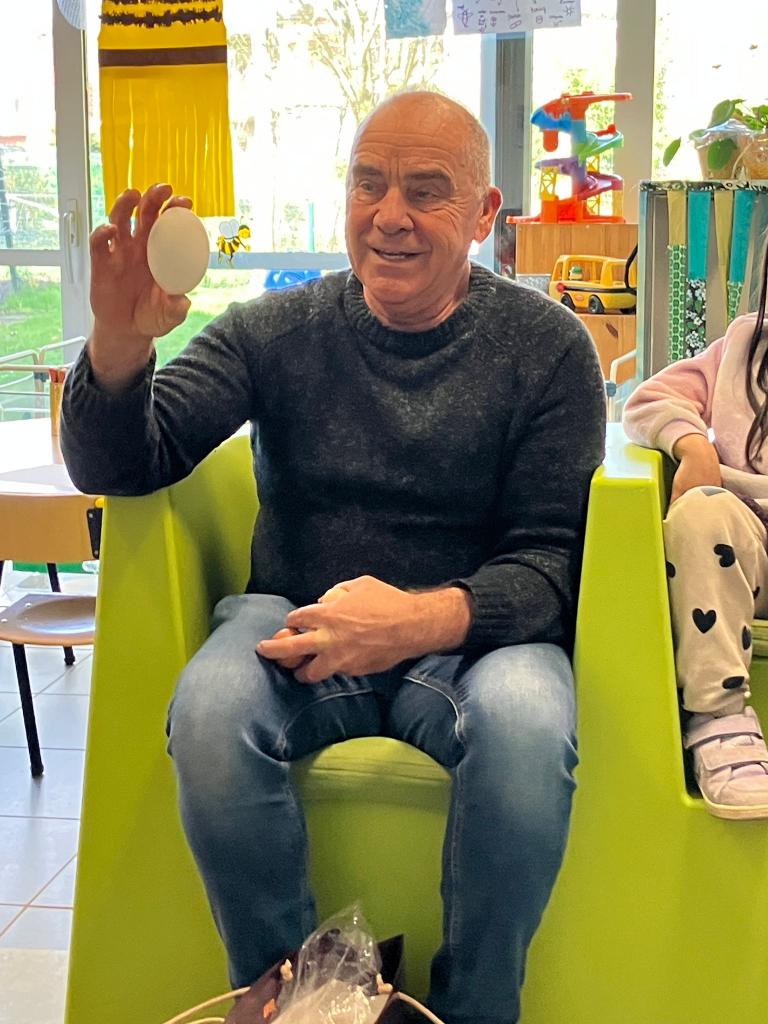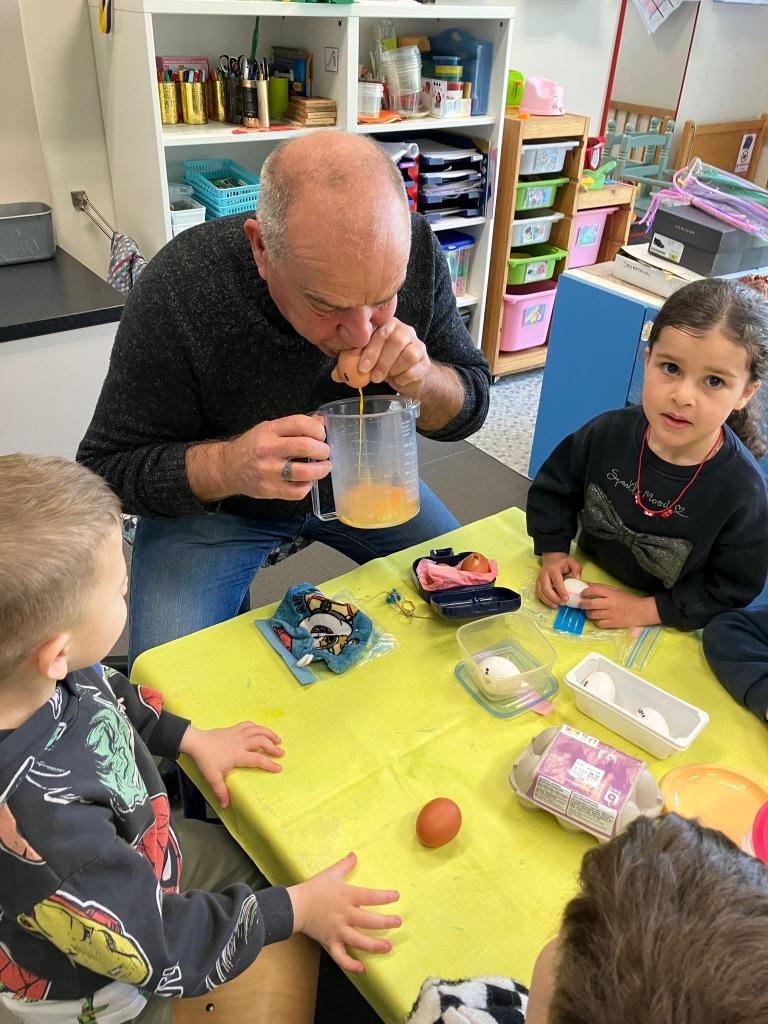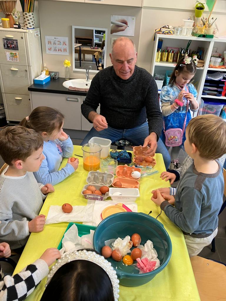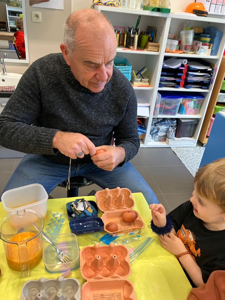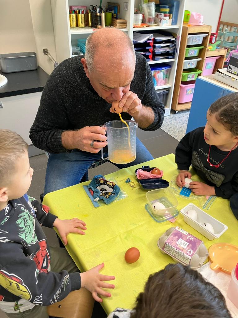 Als de beste kan hij eitjes uitblazen en leerde het onze kleuters.
