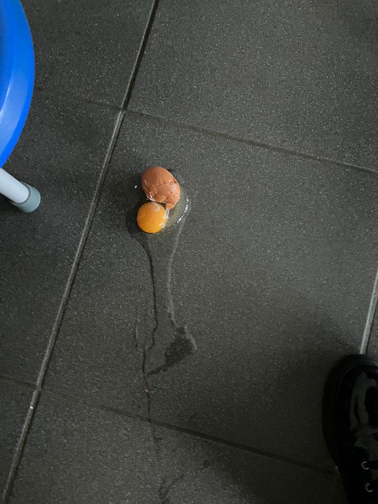 En jammer maar ook 2 eitjes gingen de grond op..aiai.