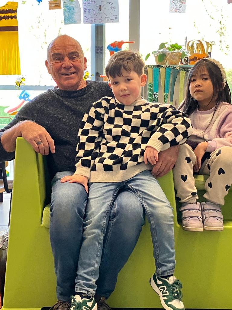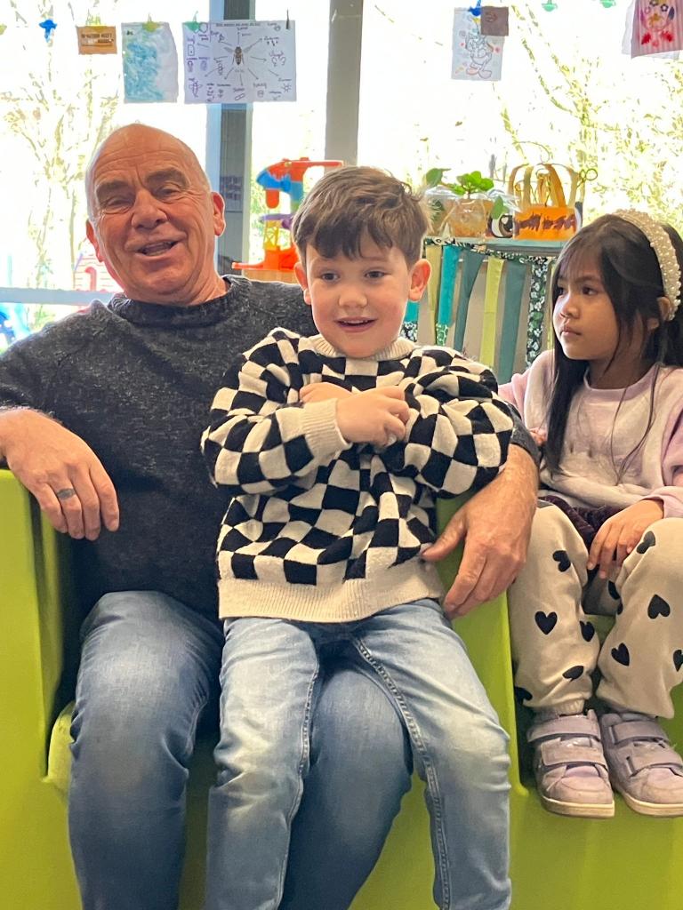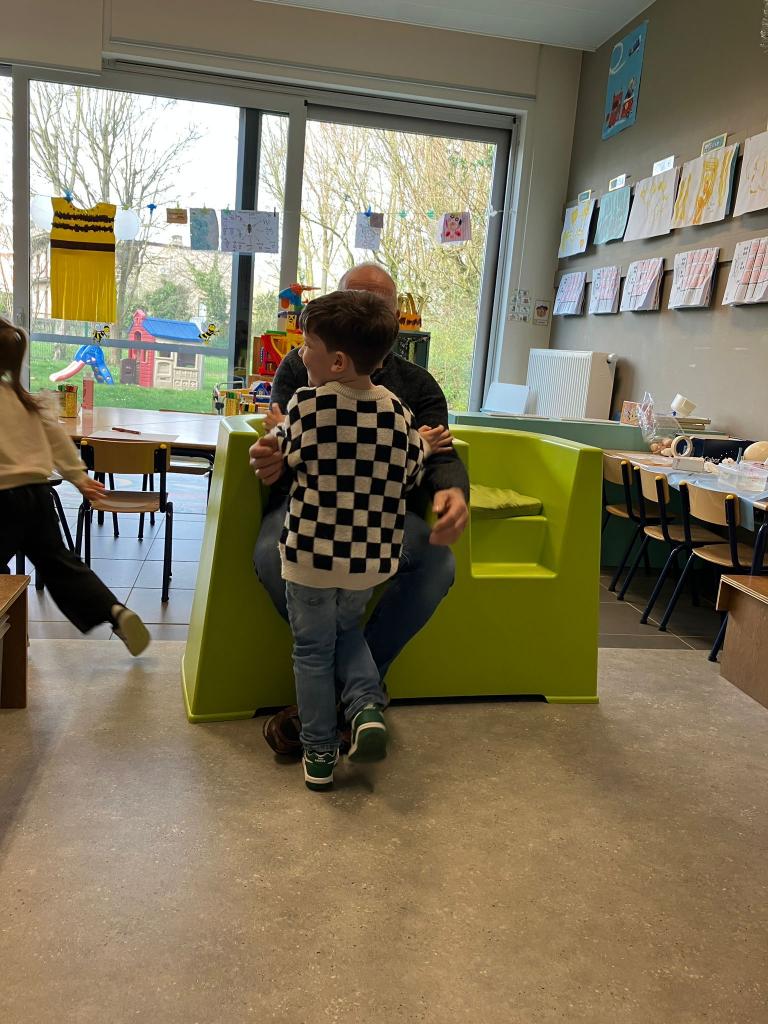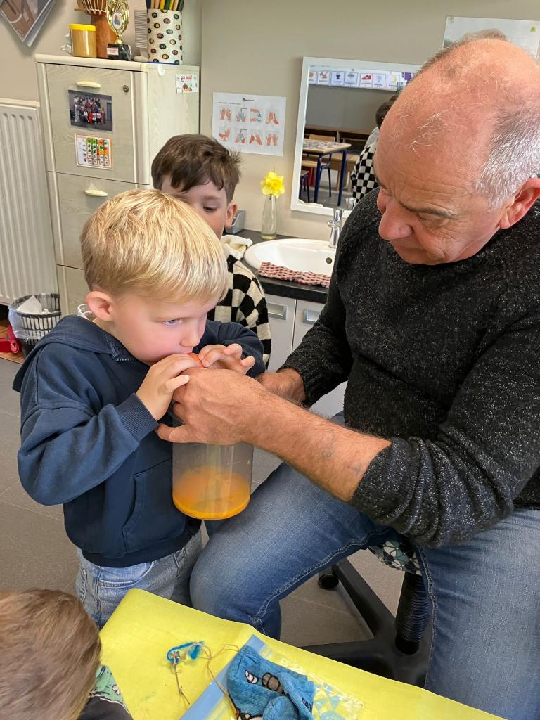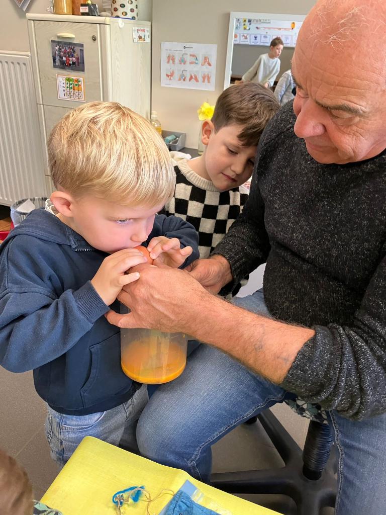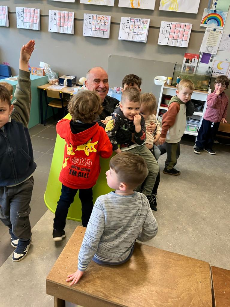 Op 12 maart kwam klasse-grootouder Luc, opa van Lev, op bezoek. (Vrienden noemen hem nonkel Luc)