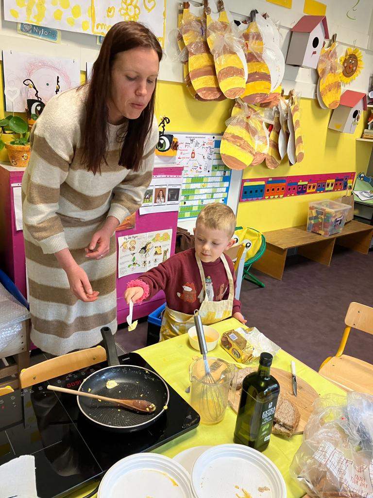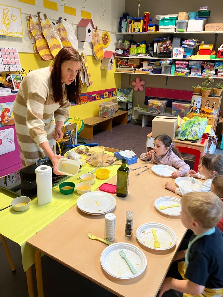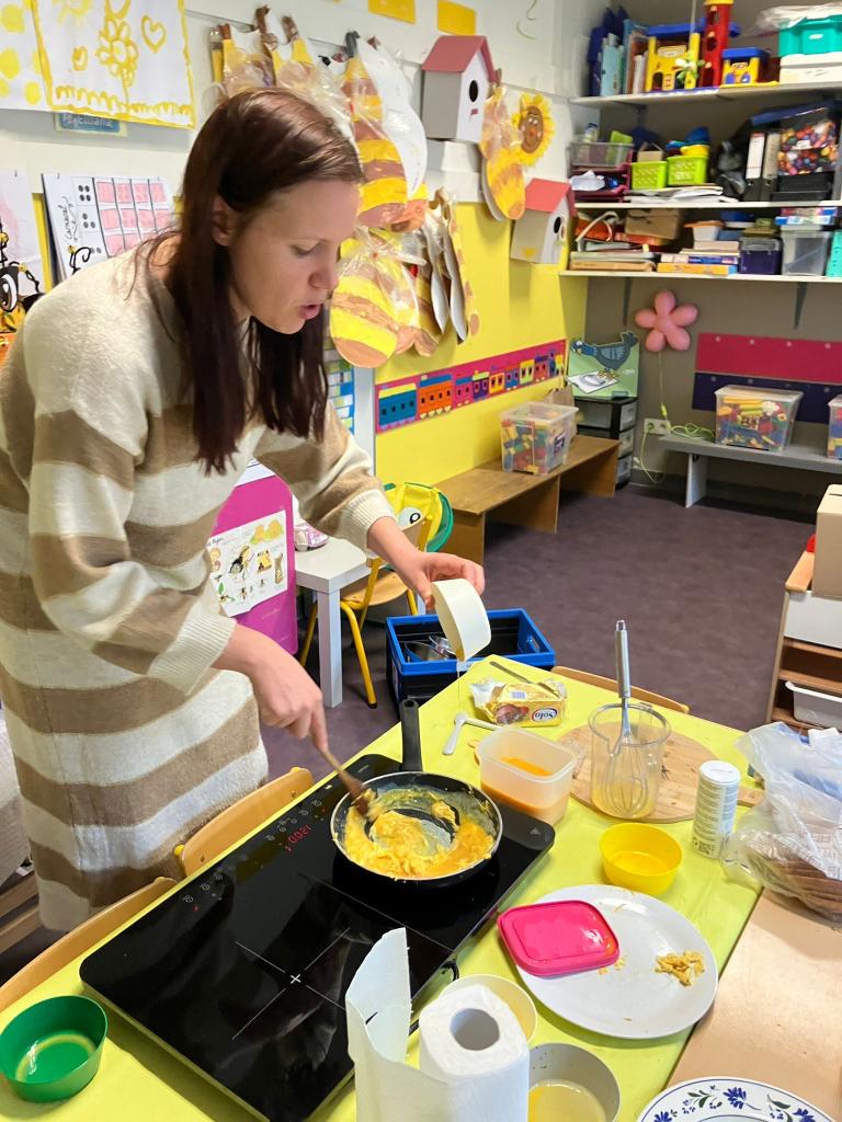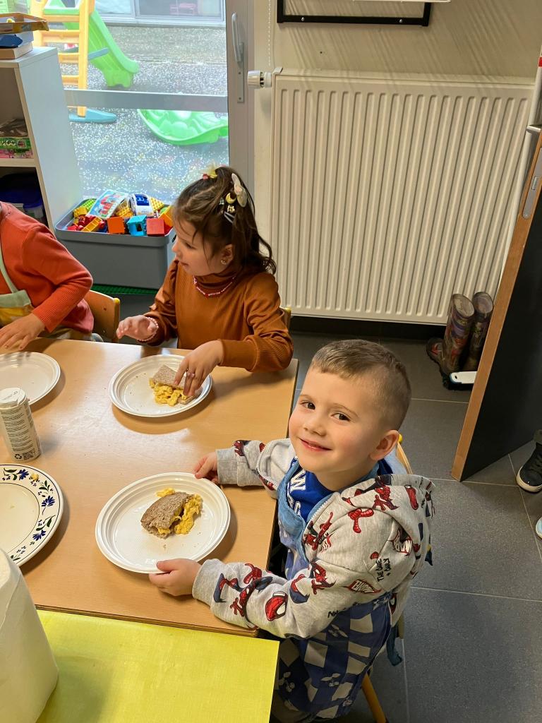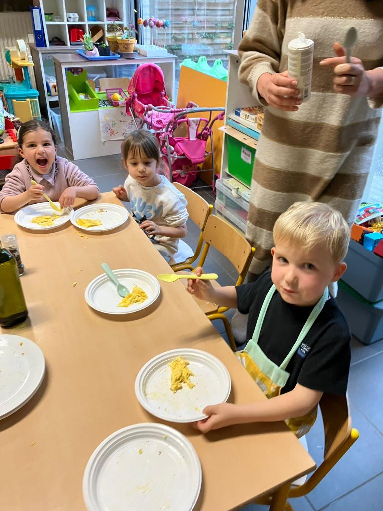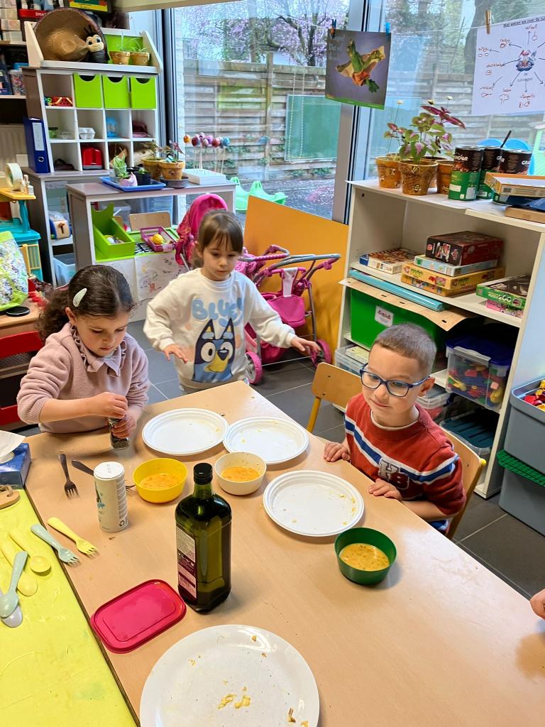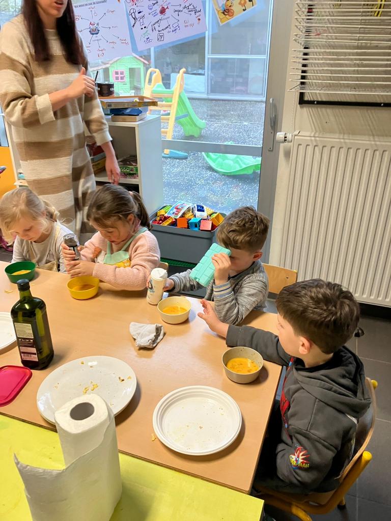 Vrijdagnamiddag 13 maart kwam klasse-ouder Hanne, mama van klasgenootje Tuur, naar de klas om eitjes te bakken.